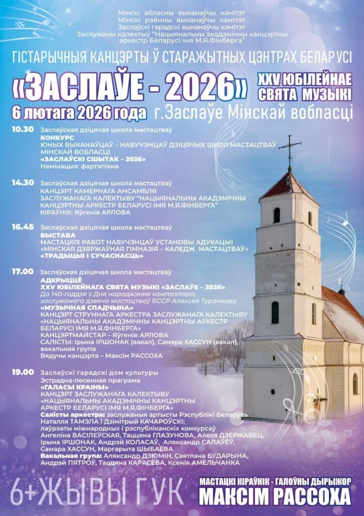 10:30 — Конкурс юных исполнителей «Заслаўскі сшытак-2026» (номинация — фортепиано). Участвуют ученики ДШИ Минской области.